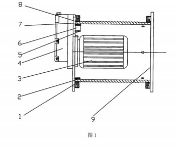圖面說明:1、做端蓋2、內齒圈3、電動機4、減速機5、齒輪6、輸出軸7、筒幣8、軸承9、右端蓋
